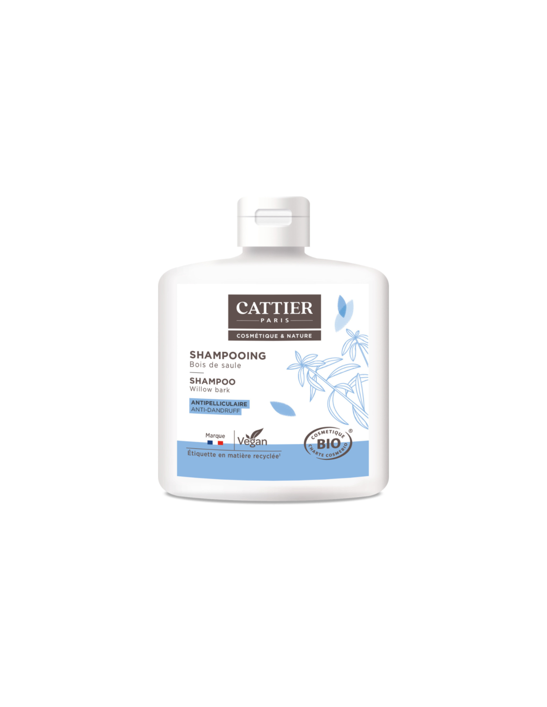 - Extrait de bois de saule (riche en acide salicylique) : antipelliculaire, régénérant, antimicrobien, protecteur, non irritant.